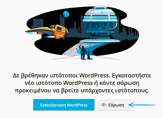 Αν δεν βλέπετε την εγκατάστασή σας στο προσωρινό URL, πατήστε πρώτα “Scan”, όπως φαίνεται παρακάτω: