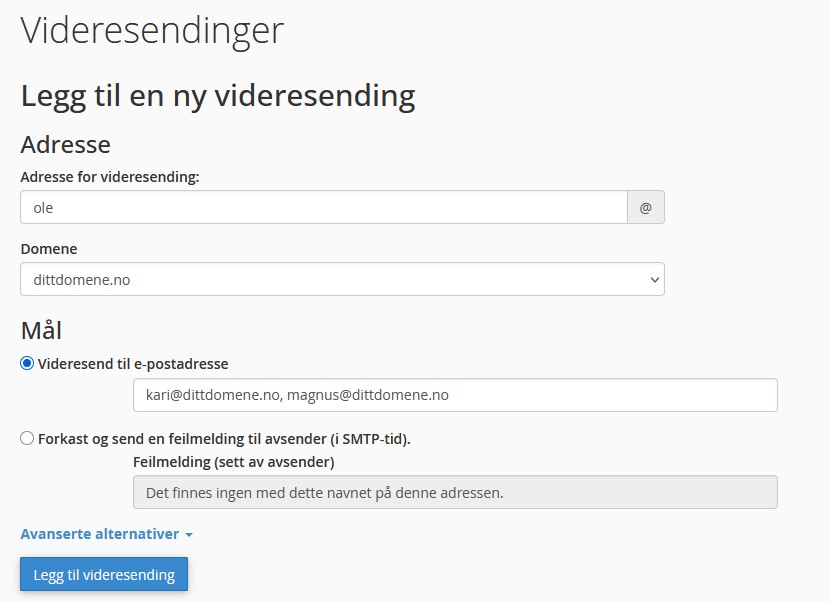 Du har mange muligheter for å sette opp ulike typer e-postvideresending gjennom systemet hos polar55. I denne guiden vil vi vise deg den vanligste metoden.