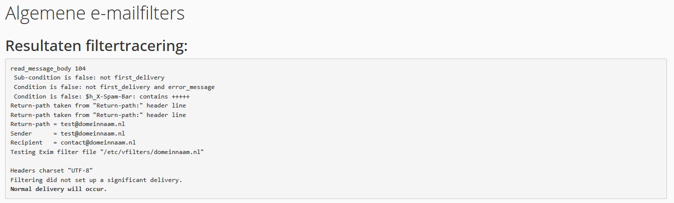 Na het aanmaken van je filter, kun je testen of het werkt onder 'Filtertest' in het filteroverzicht.