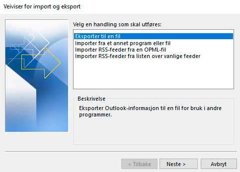 4: Velg alternativet "Eksporter til en fil" og klikk på "Neste"-knappen.