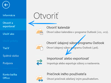 2: Kliknite na „Súbor“ v menu Outlooku a potom na „Otvoriť a exportovať“.