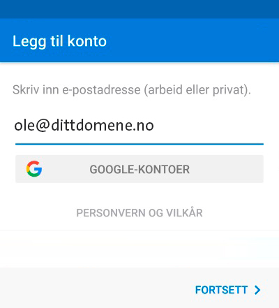 mail.dittdomene.no (erstatt dittdomene.no med domenet ditt fra e-postadressen du setter opp.)