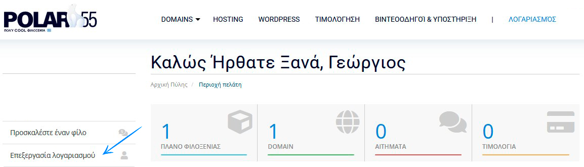 1: Συνδεθείτε στο control panel σας.