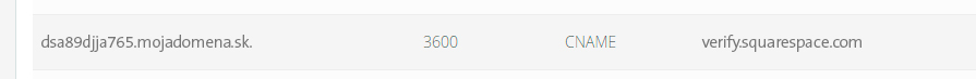 Squarespace vám poskytne sadu DNS záznamov, ktoré je potrebné pridať k vašej doméne u nás. Tu je príklad: