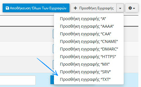 Για το πεδίο Name, απλώς εισαγάγετε το όνομα του τομέα σας, και στο πεδίο Record επικολλήστε αυτό που αντιγράψατε από τη Google. Ο τύπος (Type) πρέπει να είναι TXT.
